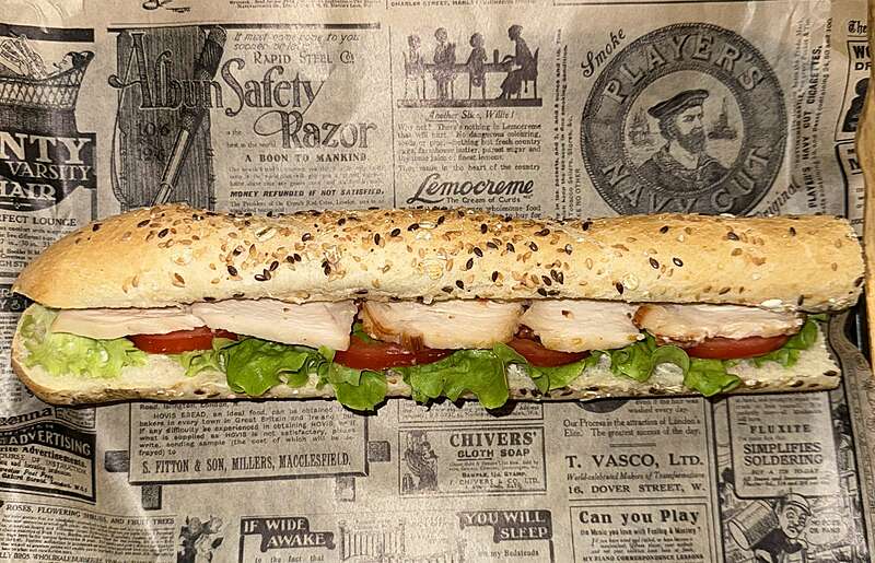 pain baguette au sesame, Salade, tomate, poulet, cheddar, sauce mayo